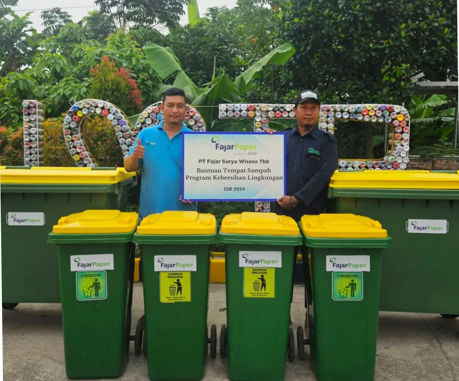 Perwakilan Manajemen Fajar Paper, Leonard Lumenta, menyatakan, “Fajar Paper melalui program Penyerahan Tempat Sampah turut mendukung pelestarian lingkungan yang bersih sebagai komitmen kepedulian Fajar Paper pada kesehatan lingkungan di masyarakat sekitar.”