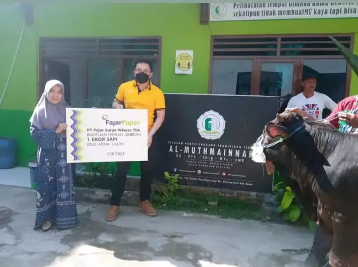 Ibu Effi, dari Yayasan Al Muthmainnah mengutarakan, “Terima kasih kami ucapkan kepada Fajar Paper karena telah ikut berpartisipasi kembali memberikan hewan kurban dalam merayakan Idul Adha tahun ini. Semoga Fajar Paper selalu sukses dan tambah banyak rezekinya.”