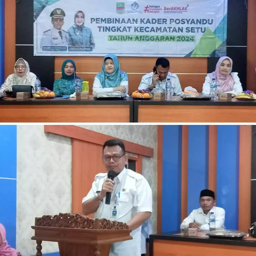 Bekasi, desapedia.id – Aparatur Kecamatan Setu menggelar kegiatan Pembinaan Kader Posyandu Tingkat Kecamatan Setu Tahun Anggaran 2024, di Aula Kantor Desa Tamansari, Kecamatan Setu, Kabupaten Bekasi, Rabu (15/5/2024).