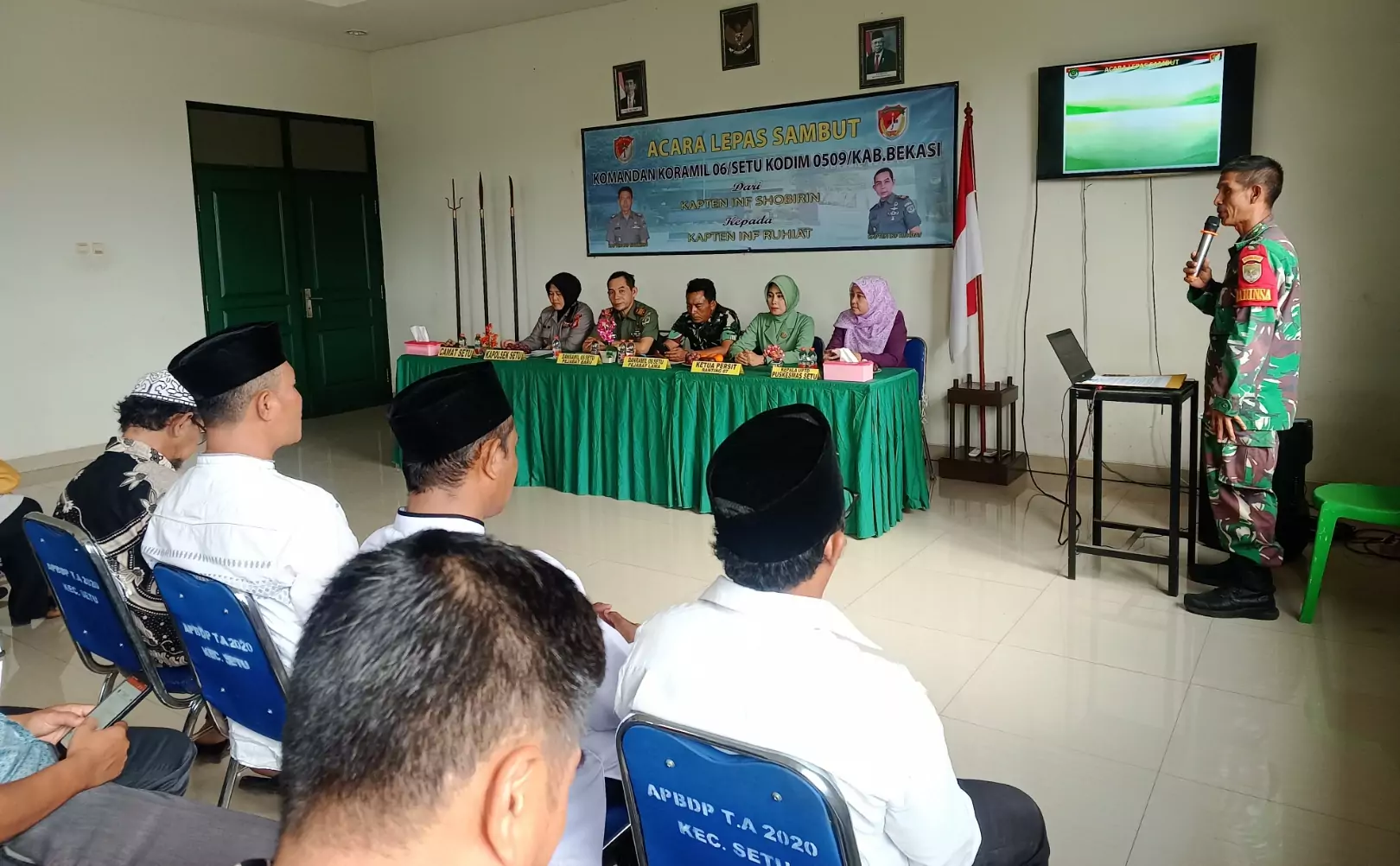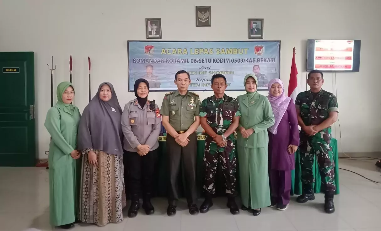 Bekasi, desapedia.id – Acara lepas sambut Komandan Koramil 06/Setu berlangsung pada Jumat (3/5/2024). Dalam acara itu, kepemimpinan Koramil diserahterimakan dari Kapten Infanteri Shobirin kepada Kapten Infanteri Ruhiat.