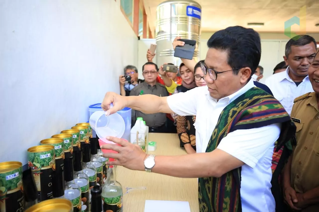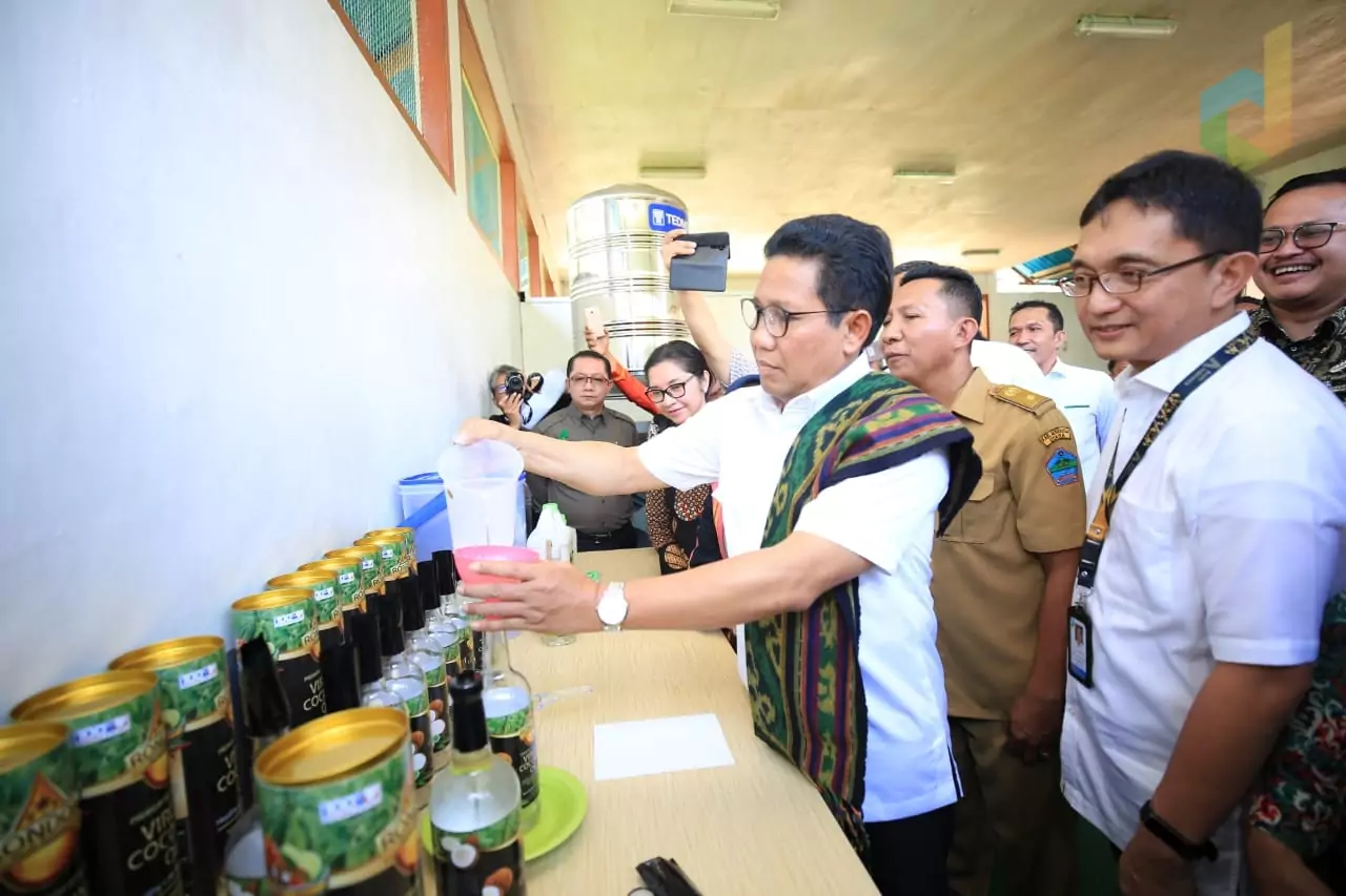 Manado, desapedia.id – Menteri Desa, Pembangunan Daerah Tertinggal, dan Transmigrasi (Mendes PDTT), Abdul Halim Iskandar meninjau pabrik minyak goreng dan virgin coconut oil (VCO) milik BUMDes Solafide di desa Rinondoran, Kecamatan Likupang Timur, Minahasa Utara, Sulawesi Utara.