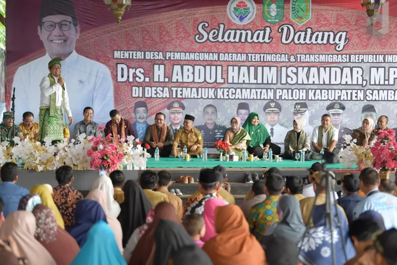 Dalam kunjungannya, Menteri Abdul Halim Iskandar didampingi istrinya Lilik Umi Nasriyah dan sejumlah pejabat dilingkungan Kemendes PDTT dan sejumlah pejabat lainnya di lingkungan Pemkab Sambas dan Pemprov Kalimantan Barat. (Red) (Foto : Mugi / Kemendes PDTT)