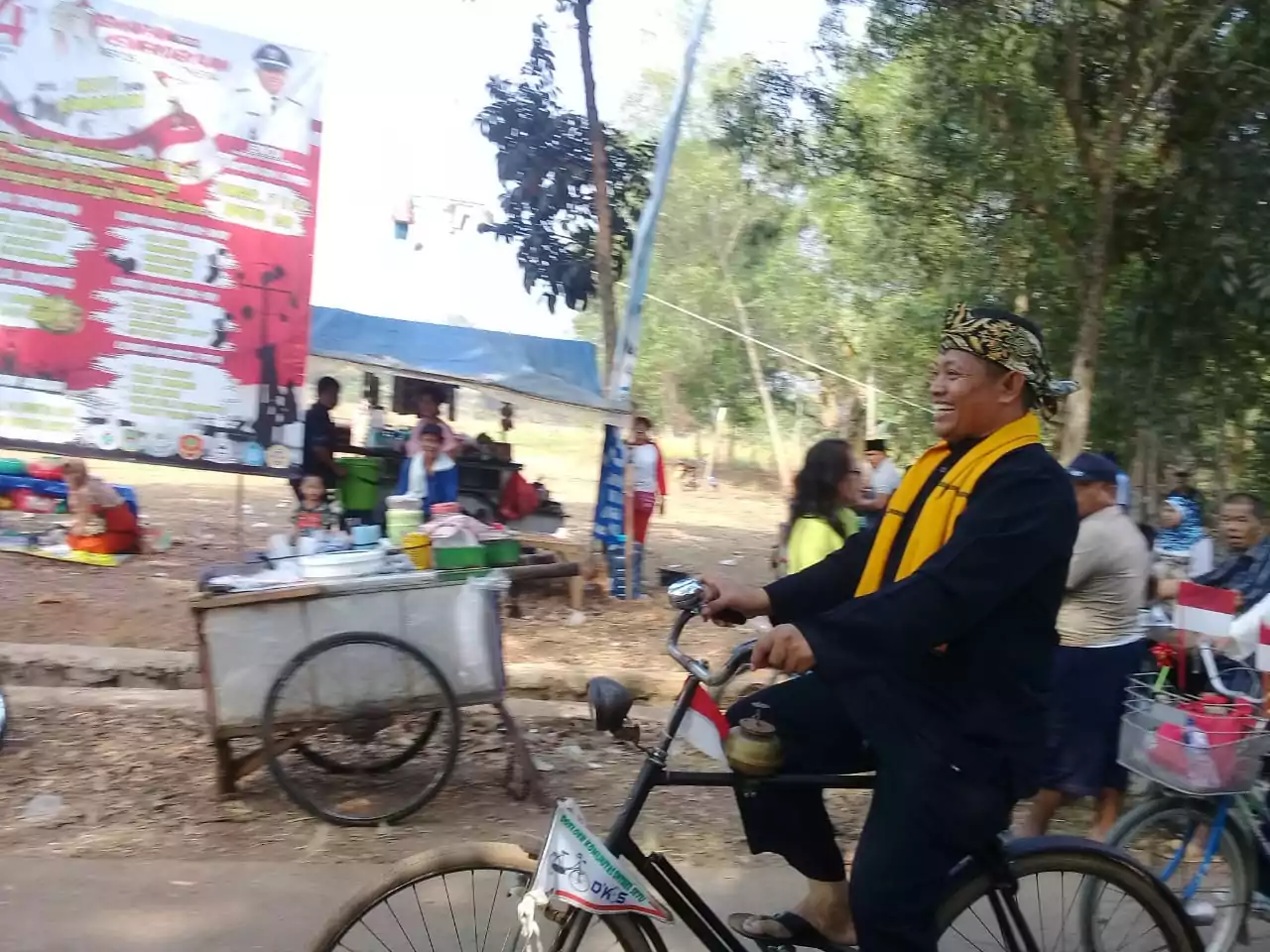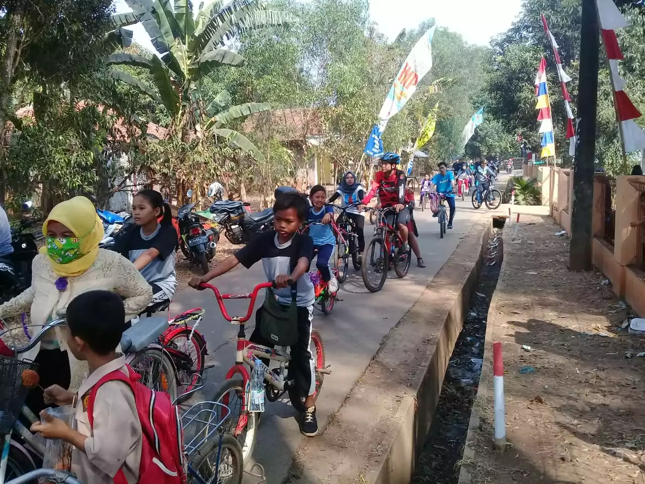 Kegiatan pesta rakyat dimulai dengan acara sepeda santai atau parade sepeda. Kegiatan ini diikuti aparatur pemerintahan desa, siswa-siswi sekolah, komunitas sepeda onthel D’KOS (Doeloer komunitas Onthel Setu) dan masyarakat setempat.