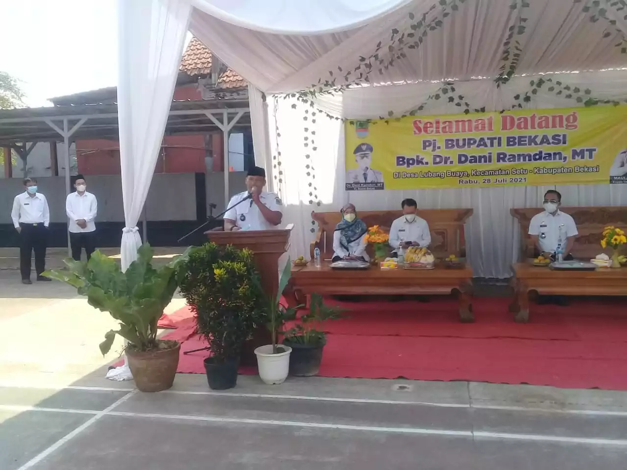 Bekasi, desapedia.id – Penjabat (Pj) Bupati Bekasi Dani Ramdan meluncurkan bantuan langsung tunai (BLT) Dana Desa tahap II untuk masyarakat Kabupaten Bekasi yang dicanangkan di halaman kantor Desa Lubangbuaya, Kecamatan Setu, Kabupaten Bekasi, Rabu (28/7/2021).