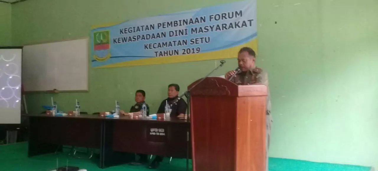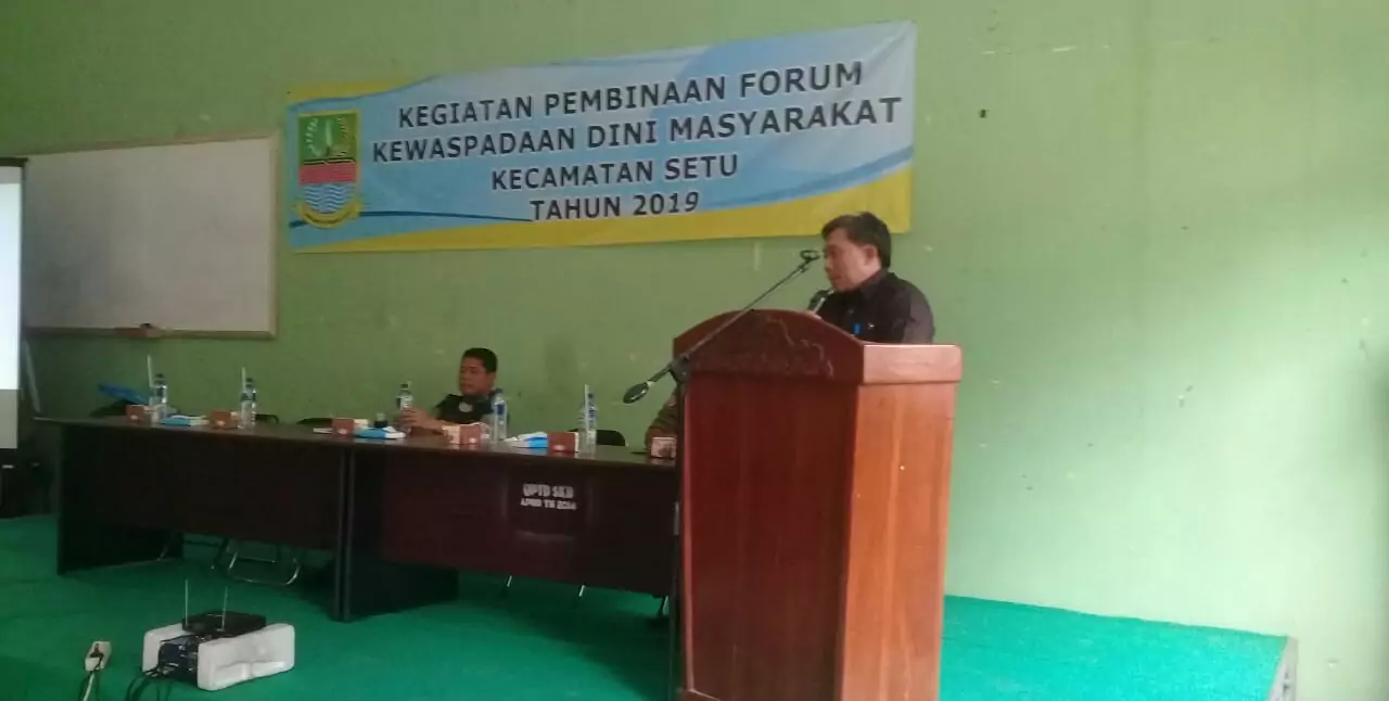 Bekasi, desapedia.id – Pemerintah Kabupaten Bekasi melalui Pemerintah Kecamatan Setu menggelar kegiatan Pembinaan Forum Kewaspadaan Dini Masyarakat (FKDM) Kecamatan Setu Tahun 2019, di Gedung Sanggar Kegiatan Belajar, Kecamatan Setu, Kabupaten Bekasi, Jawa Barat, Selasa (9/7/2019).