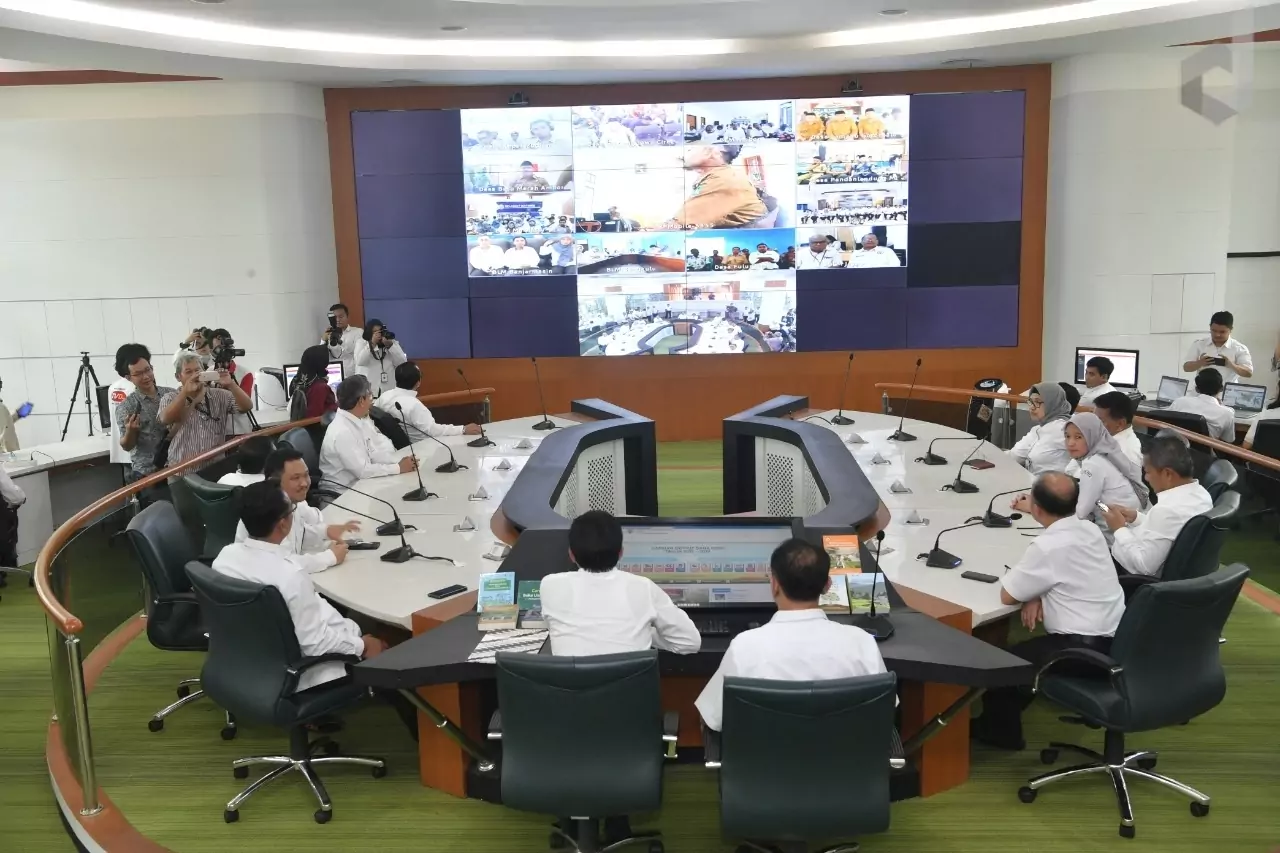 Jakarta, desapedia.id – Menteri Desa, Pembangunan Daerah Tertinggal, dan Transmigrasi, Abdul Halim Iskandar melakukan telekonferensi dengan sejumlah kepala dan perangkat desa di Indonesia, Jakarta, Senin (13/1/2020). Dalam telekonferensi tersebut ia mengecek satu per satu realisasi dana desa tahun 2019 dan perencanaan dana desa tahun 2020 pada masing-masing desa.